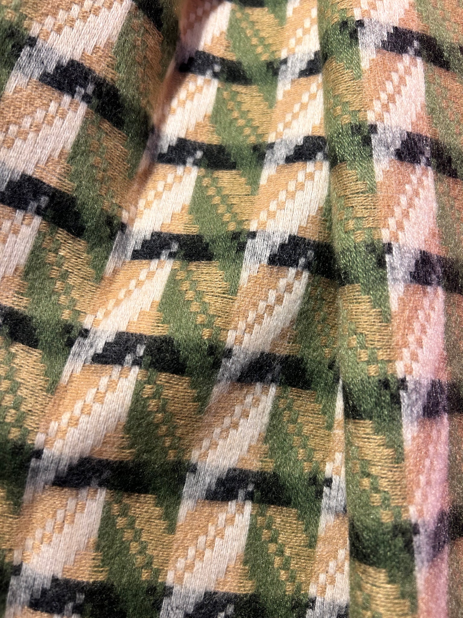 This herringbone stripe print scarf with soft hand feel is a gorgeous scarf for any outfit. This has a beautiful green, white, beige and black stripe design to compliment any outfit and is perfect for Autumn/Winter.