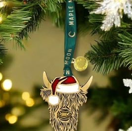 It hangs beautifully on our Maple Moon ribbon, complete with our signature gold charm, adding a hint of holiday sparkle and elegance. This Highland cow ornament brings a whimsical piece of the Highlands into your home for the holidays.