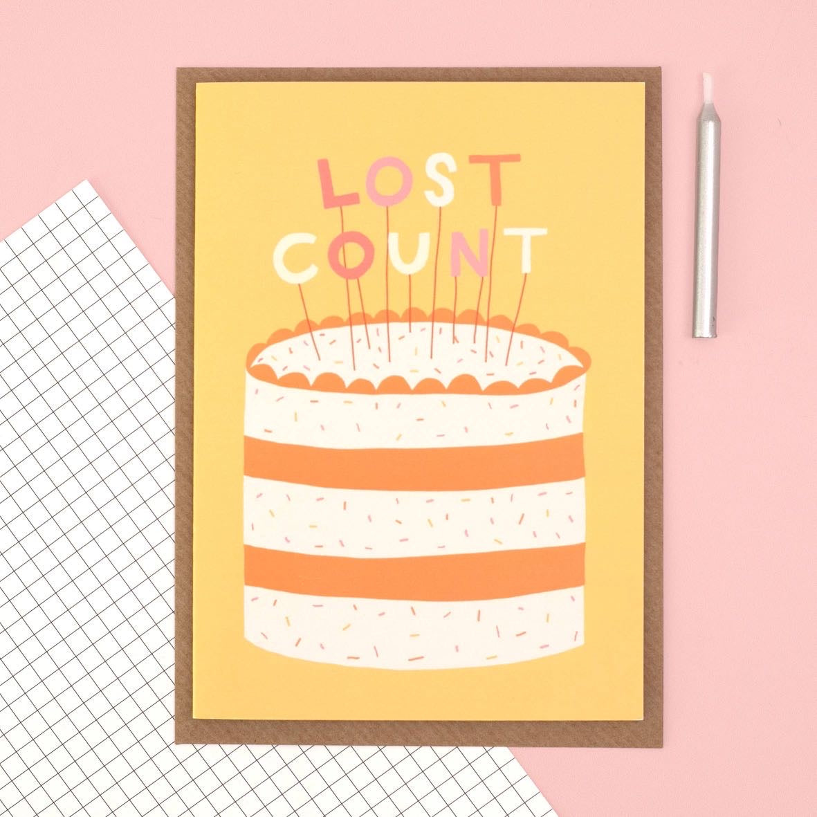 Lost Count Bright Birthday Card • Professionally printed with an original Oh, Laura design • Blank inside for your own message • Made from recycled 300gsm card • Comes with a recycled kraft envelope • A6 measures 105mm x 148mm.