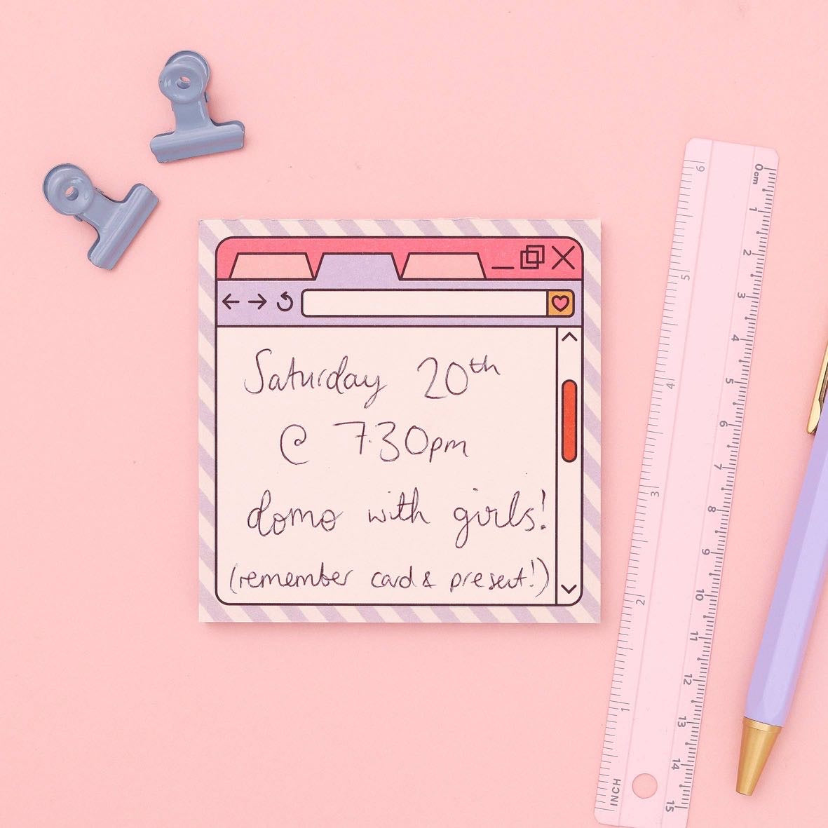 A novelty memo pad that looks like a search engine. Features cute computer tab illustrations and a search bar area for notes, thoughts, or reminders. Adds a dose of whimsy to workspaces and great as a stocking filler or desk treat.