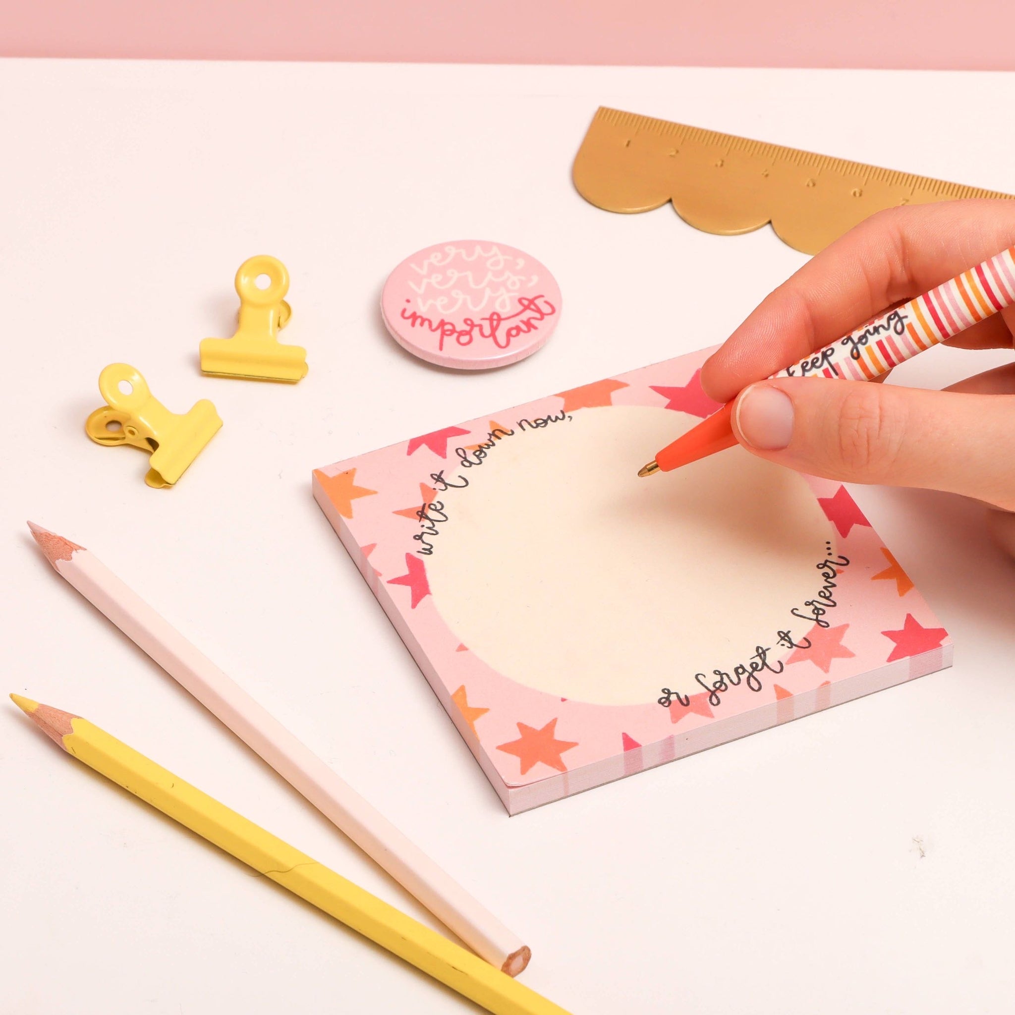 - 50 tearaway pages - 100gsm professionally printed bright white paper - Thick board backing - Packaged with a branded paper belly band - Measures 93x93mm - Perfect for jotting down important dates, tasks and notes.