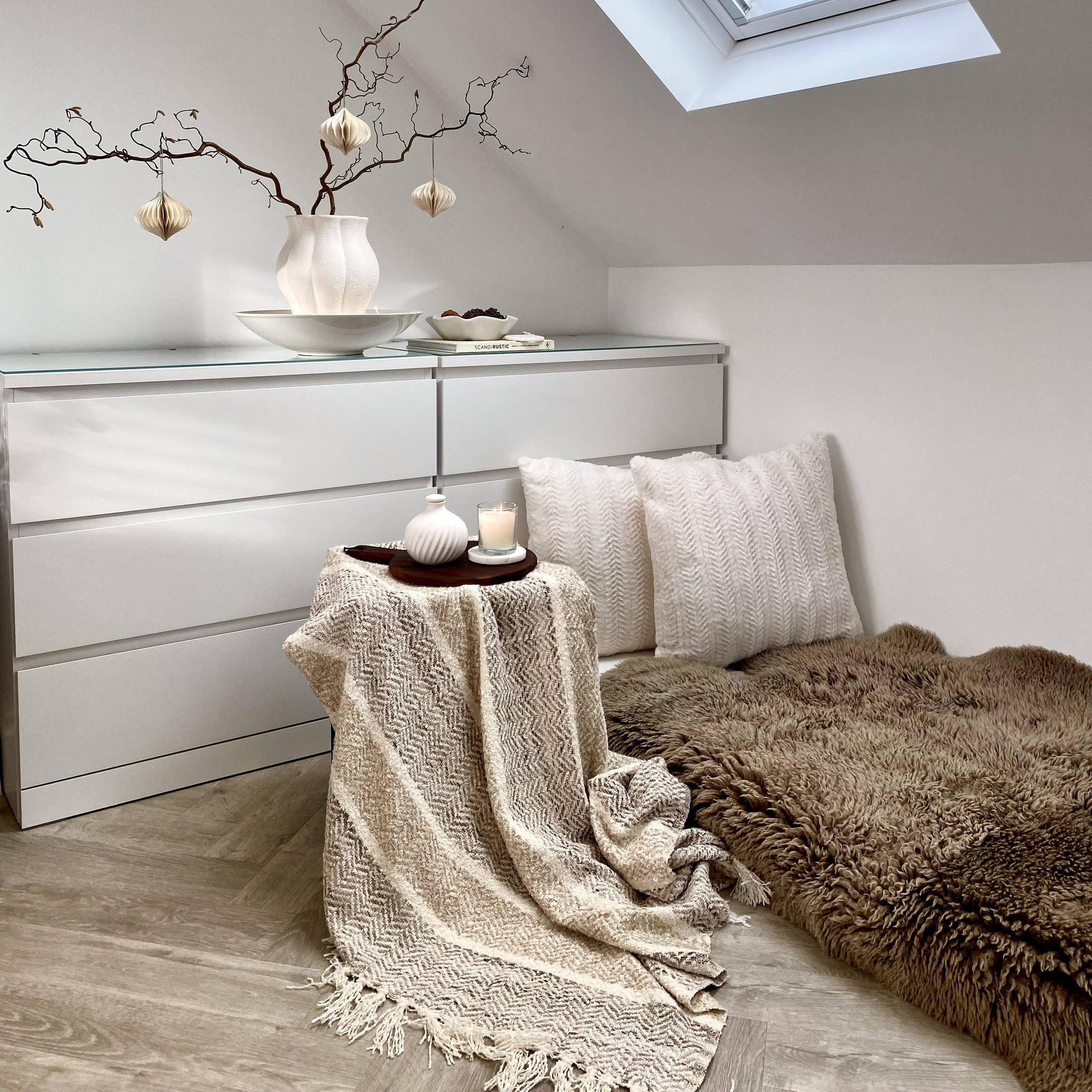 Crafted with meticulous attention to detail, this super soft chenille throw is a perfect blend of comfort and style. The herringbone pattern is a classic design that never goes out of style, adding contemporary character to your décor. Made from 100% recycled material, this patterned throw is incredibly soft to the touch. The high-quality construction ensures durability so that it becomes a treasured cosy touch in your home. To enhance its visual appeal further, these blankets are finished with fringed tassels, adding a decorative touch. The tassels cascade beautifully along the edges, elevating the blanket's overall look.