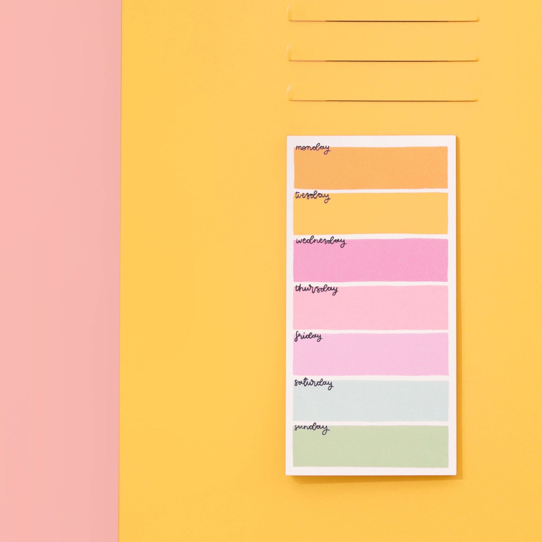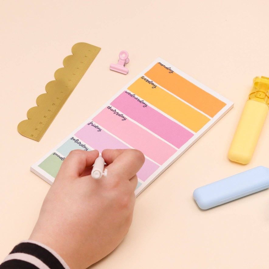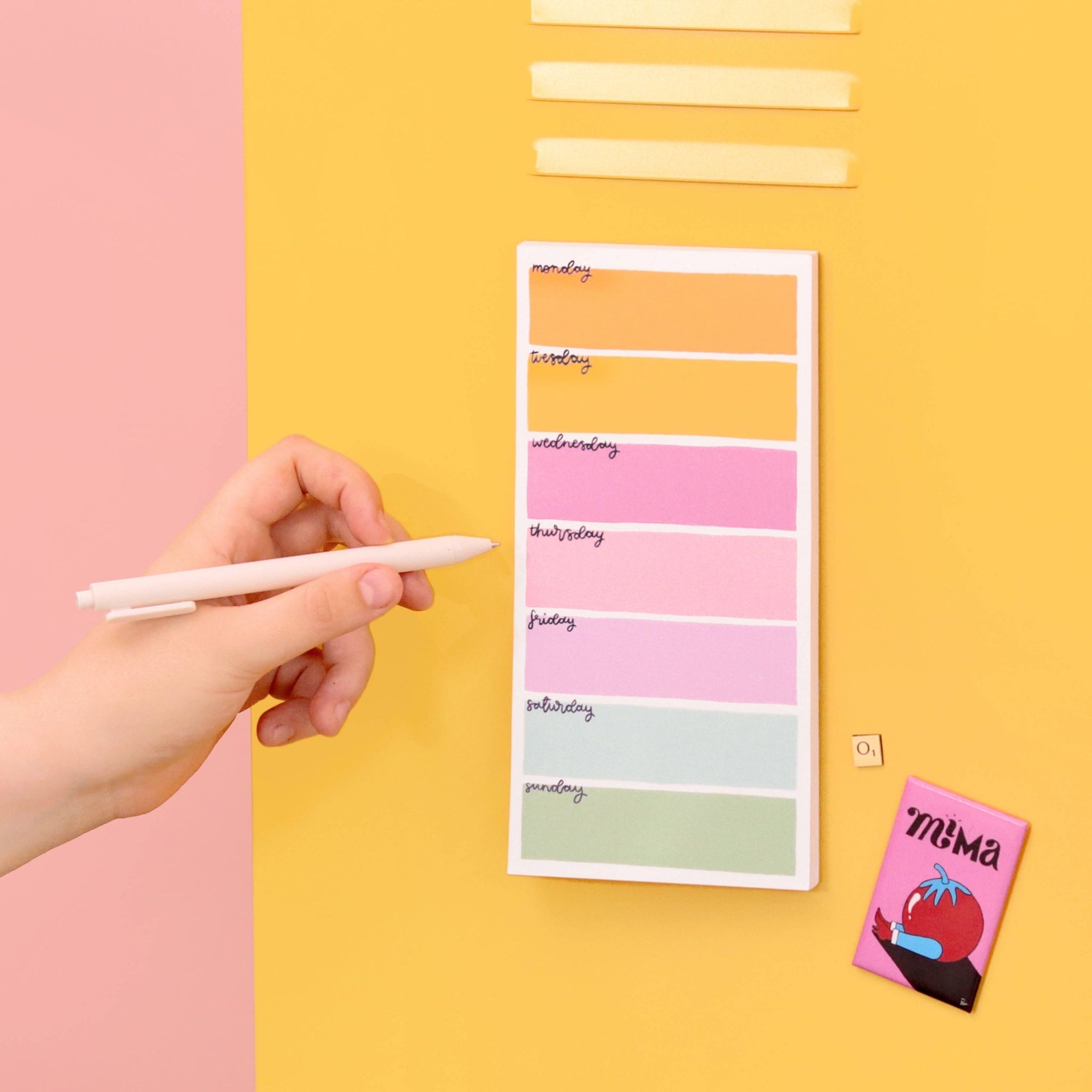 - 50 tear away pages - 100gsm bright white professionally printed paper - Thick grey board backing - Comes packaged in a branded belly band, with zero plastic - Fully recyclable - Measures 99 × 210 mm -Add a magnet to your order to attach to your notepads, memo pads and to-do lists.