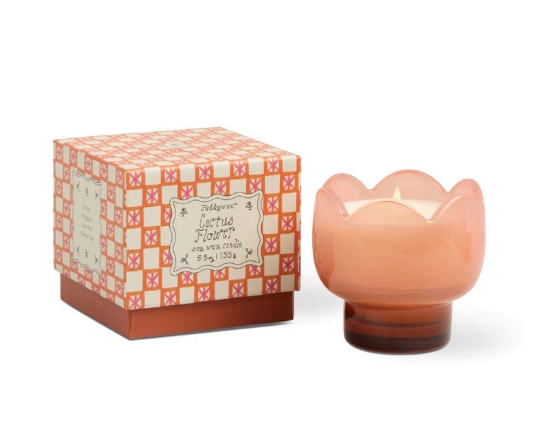 Brighten up your space with the delicate scent of Cactus Flower. This Paddywax soy wax blend candle is beautifully presented in a blush, scalloped vessel that adds an instant touch of charm to shelves, bedside tables, and coffee corners. Once lit, it creates a warm glow and a fresh, uplifting fragrance that’s perfect for everyday home comfort.