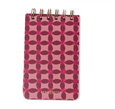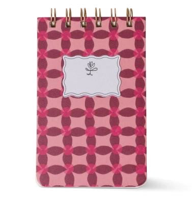 Pink patterned spiral notepad with a bold geometric design and a clean white label on the front—perfect for daily lists, to‑dos, journaling and gifting. A stylish little stationery essential for home, work or school.